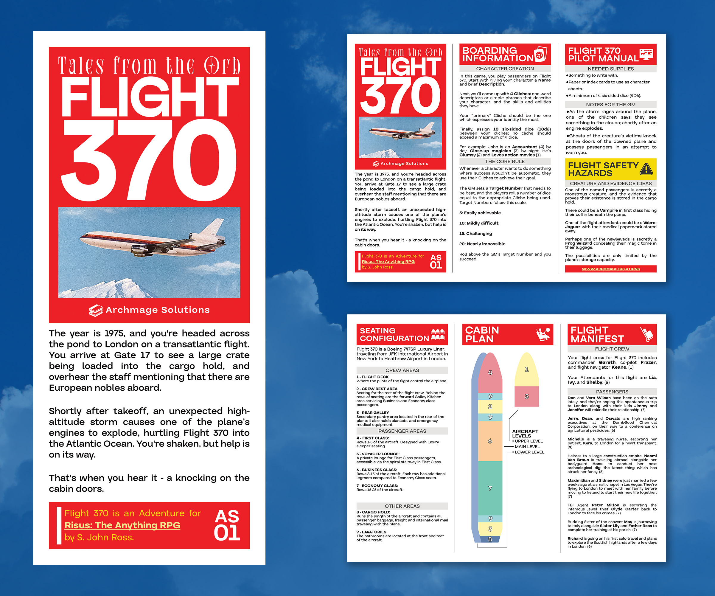 Flight 370 is a free pamphlet adventure for Risus: The Anything RPG, by S. John Ross, designed as a one-shot for 3-5 players.